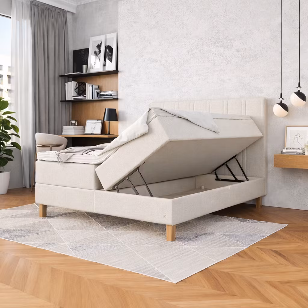 Denna eleganta kontinentalsäng erbjuder inte bara en utmärkt sovkomfort, utan också praktisk förvaring under båda liggdelarna – idealiskt för dig som vill utnyttja varje centimeter av sovrummet.