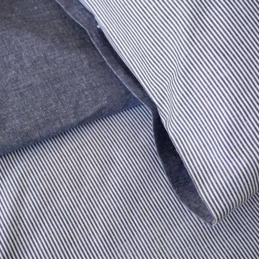 Design: Randig på ena sidan, chambray enfärgad baksida