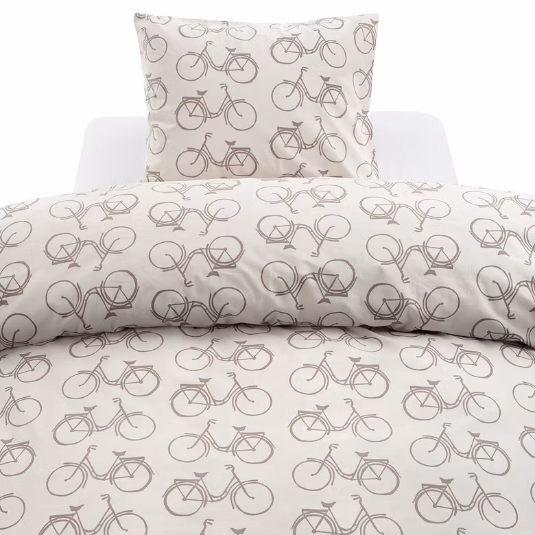 Bäddset Cykel Beige från Borganäs of Sweden kombinerar unik design med klassisk bomullskomfort.