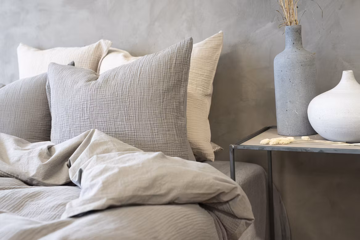 Skapa en lyxig och harmonisk hotellkänsla hemma med Bäddset Rolling Grå från Borganäs of Sweden.