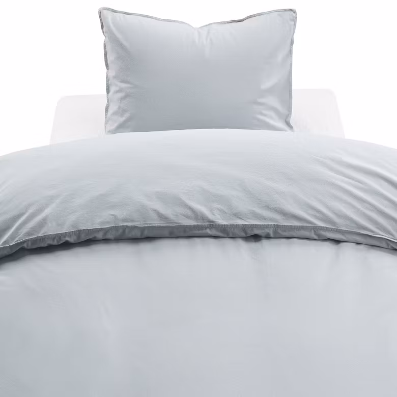 Påslakanet har hörnhål upptill för enkel bäddning, medan örngottet har en kuvertöppning som håller kudden på plats hela natten.