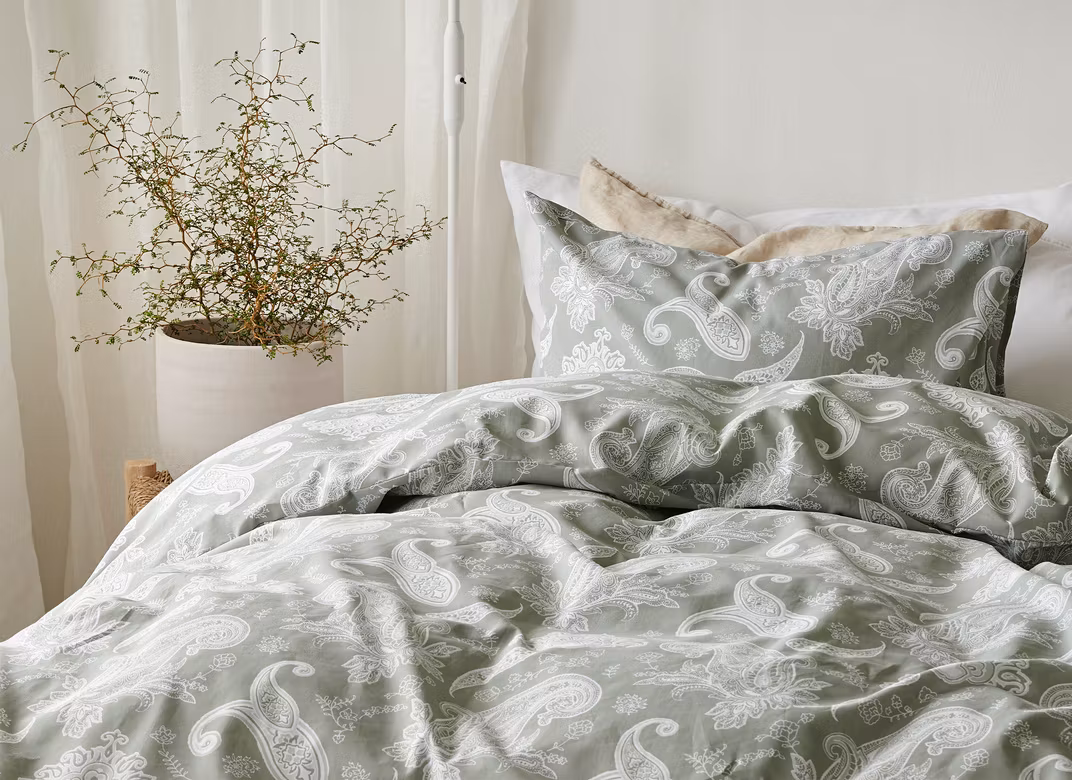 Det vackra paisleymönstret i gröna toner skapar en harmonisk atmosfär, medan det mjuka, följsamma tyget gör det till ett rent nöje att krypa ner i sängen.