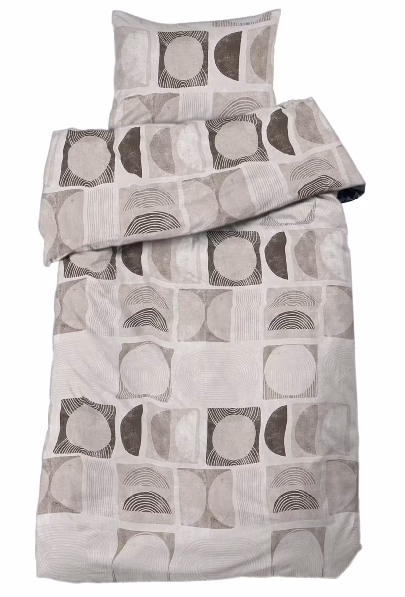 Como Beige Bäddset – Grafisk design i mjuka naturtoner.