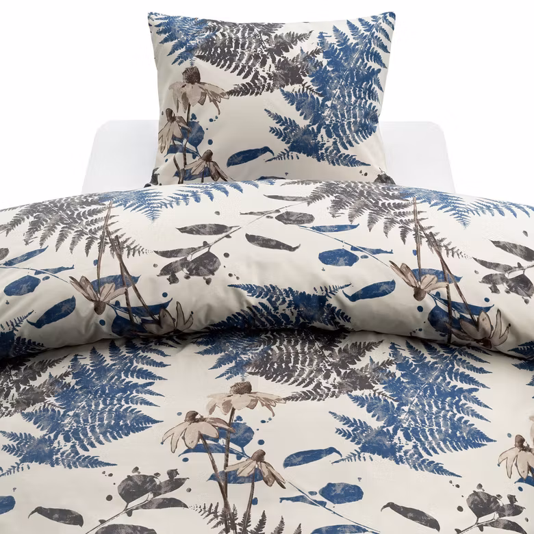 Skapa en lugn och harmonisk sovmiljö med Skogsdunge Marinblå bäddset från Harmony. Det vackra mönstret med blad och blommor i blå och vita nyanser ger sovrummet en naturnära känsla med elegant kontrast. Ett bäddset som förenar stil och funktion och passar perfekt för dig som vill ha ett lättskött och tåligt alternativ för vardagens alla nätter.