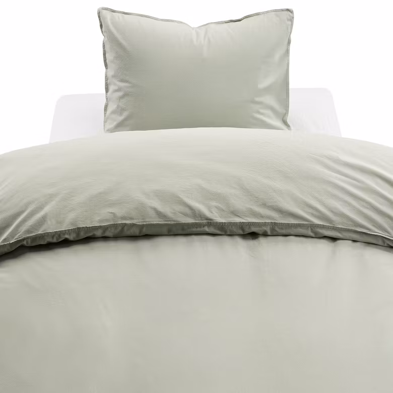 Påslakanet har hörnhål och en öppning i botten som gör bäddningen smidig, medan örngottet är utrustat med en klassisk kuvertöppning som håller kudden på plats hela natten.